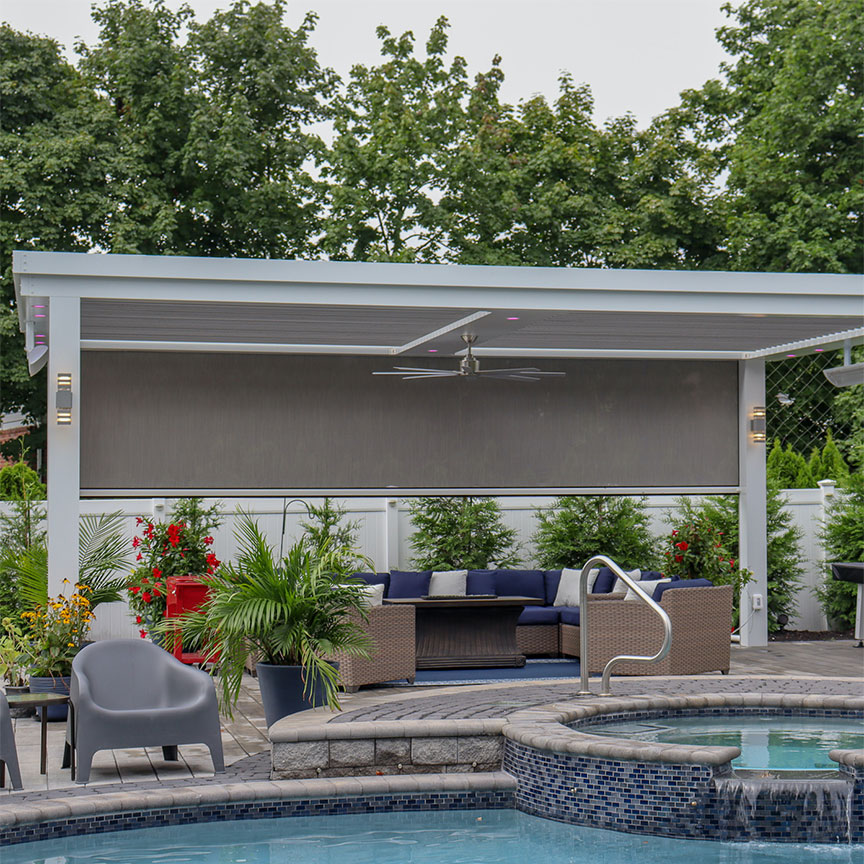 Integrated lighting and motorized screens are what turn a pergola into a room you use all day and into the evening — not just when the weather cooperates. We install the full system and show you exactly how to use it before we leave.