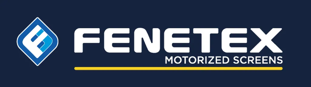 Fenetex motorized screens — deploy from TraX rails; single or multi-side enclosure; solar, privacy, and insect mesh options