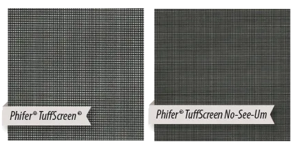 Phifer TuffScreen heavy duty 18x16 (standard) · TuffScreen No-See-Um 20x20 (blackfly and tiny insect exclusion)